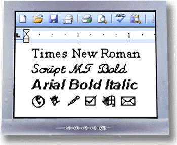 The Braille Line: This is a hardware device, which in combination with specific programs, shows the content of the screen in braille characters, so that blind or deaf-blind people can access the information on the screen.