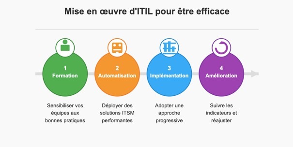 Pour tirer pleinement parti des avantages d'ITIL, une implémentation méthodique est essentielle. Voici les points clés à considérer pour une mise en œuvre réussie :