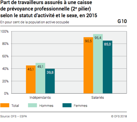 En Suisse, en 2017, les personnes exerçant une activité d’indépendant étaient de 13 personnes actives sur 100 (y compris salariés propriétaires de leur SA ou SARL). Les statistiques ont démontré qu’en matière de protection sociale, un quart des indépendants à plein temps ne sont pas assurés auprès d’une caisse de pension, ni ne cotisent pour un 3ème pilier.