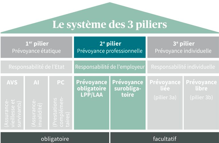La structure du système suisse de prévoyance se compose de 3 grands piliers :