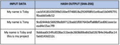 An example of data encryption via Secure Hashing Algorithm 256 (SHA 256) and the computed result.