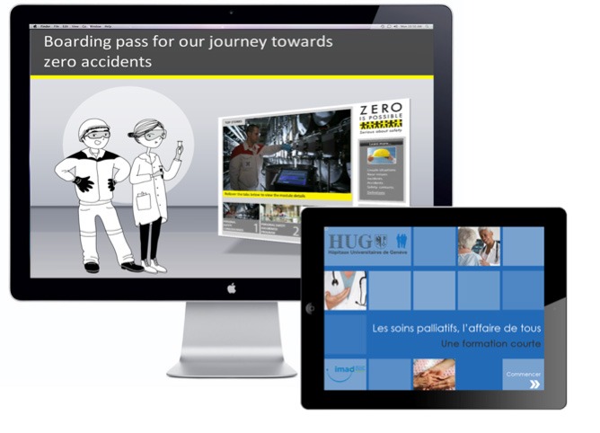 Nous travaillons avec tout type d’entreprise, de la multinationale à la PME. Nos clients sont des banques, des assurances, mais aussi des institutions publiques, sur des projets aussi variés que la sécurité de l’information, la finance, l’histoire de Suisse ou le calcul de prestations médicales. Nul besoin d’être expert dans le domaine que nous traitons. Notre force, c’est de savoir poser les bonnes questions aux experts, puis d’appliquer notre méthodologie pour que l’apprentissage soit intéressant et interactif.