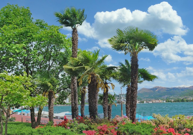 Véritable coin de paradis au climat méditerranéen, vous pourrez vous baigner à l'ombre de palmiers, vous promener autour du lac, ou encore faire de la randonnée dans les montagnes environnantes, pour profiter de la vue panoramique, depuis les sommets accessibles en funiculaire ou téléphérique.