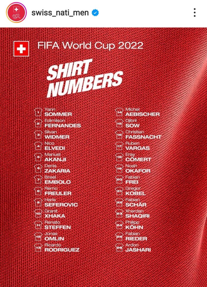 La Coupe du Monde 2022 sera une première pour Michel Aebischer, Fabian Frei, Ardon Jashari, Philipp Köhn, Noah Okafor, Renato Steffen et Fabian Rieder (convoqué pour la première fois).