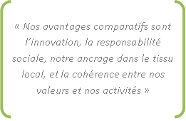 Notre troisième avantage comparatif est notre ancrage dans le tissu social et économique local, car nous soutenons plusieurs initiatives locales.