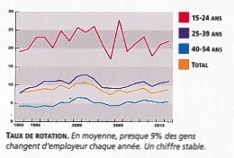 Ce sont les conclusions des chiffres publiés par l’Office Fédéral de la Statistique (OFS). En moyenne, 8,8% des employés changent de poste chaque année. Ils restent en moyenne, 11 ans chez le même employeur. Sans surprise, le plus fort taux de rotation est de 22% et concerne les 15-24 ans.