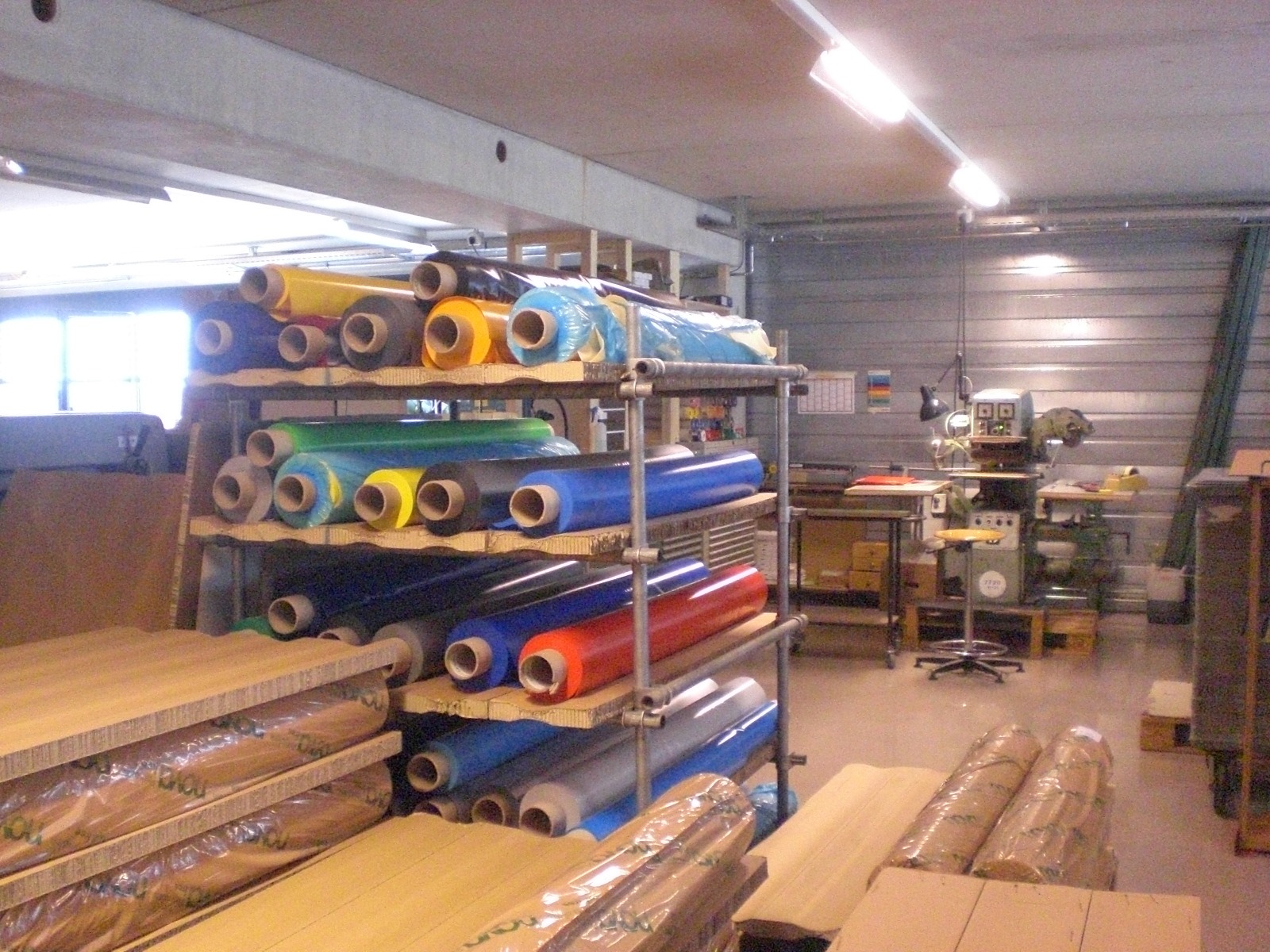 Nous achetons la matière première en bobine ou en plaque que nous coupons avant le passage en machine. Puis, nous créons un outillage suivant le plan et l’article à réaliser. La mise en forme de gabarit se fait sur un plateau machine. L’assemblage des matières est réalisé par soudure haute fréquence ou ultra-son. Une machine semi-automatique est prévue pour les grands formats à plat et une machine automatique est installée à plusieurs postes pour la matière en laize (unité de mesure) de tissu. Pour la finition de l’article, le décorticage des surplus de la matière ainsi que des ajouts de mécanismes, pinces, languettes, élastiques, poche, étiquettes, impression personnalisent les articles. Et enfin, pour les derniers travaux, nous les confions aux petites mains minutieuses d'un des sept ateliers Polyval, entreprise sociale à vocation industrielle créée en 1971, dont le but est d’aider l’insertion dans le monde du travail des personnes handicapées ou en grandes difficultés sociales.