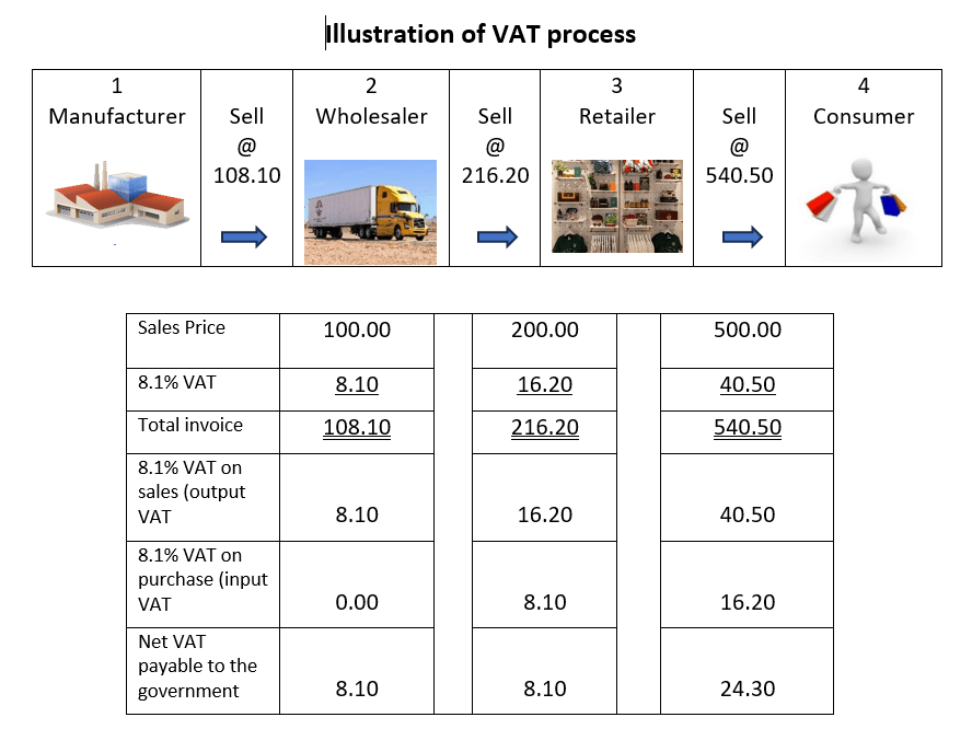 Instead of individual citizens reporting their consumption, VAT is collected from companies (such as producers, manufacturers, traders, and service providers).